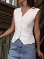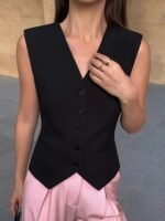 Kadın Sıfır Kollu önden Düğmeli Atlas Yelek