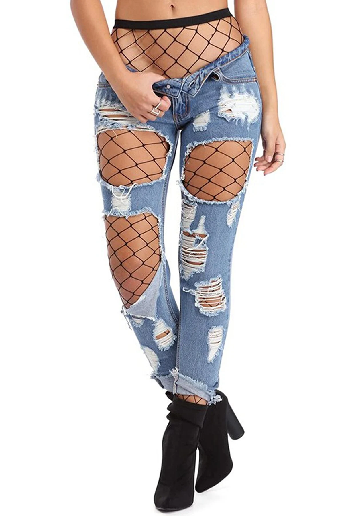 Kadın Siyah Geniş File Desenli Külotlu Çorap