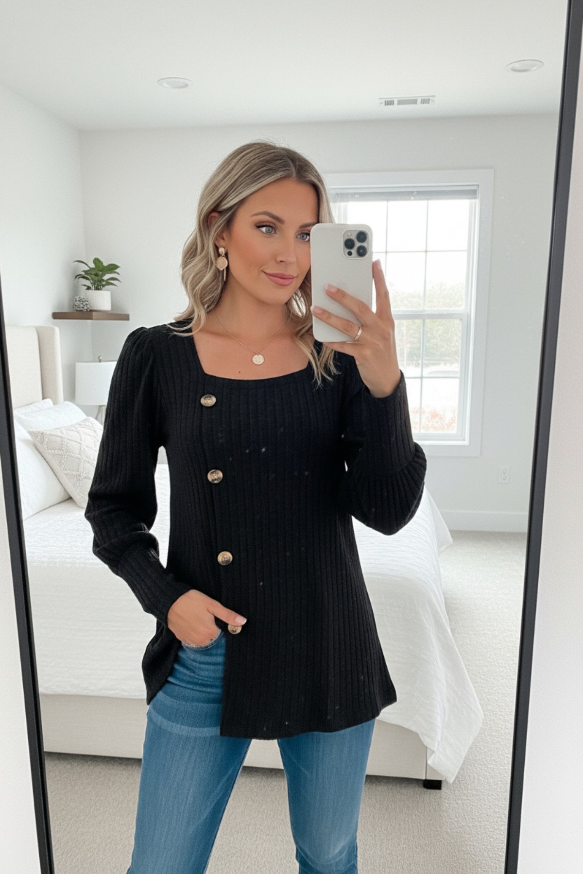 Kadın Siyah Kaşkorse Balıkçı Yaka Uzun Kollu Bodycon Mini Elbise