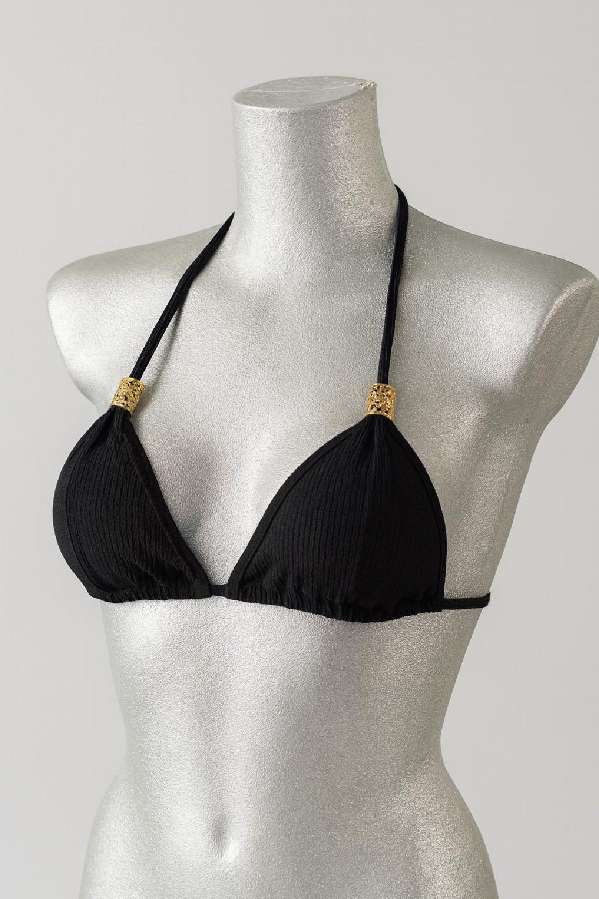 Kadın Siyah Pedli Üçgen Bikini Üstü Halter Bağlamalı Aksesuarlı