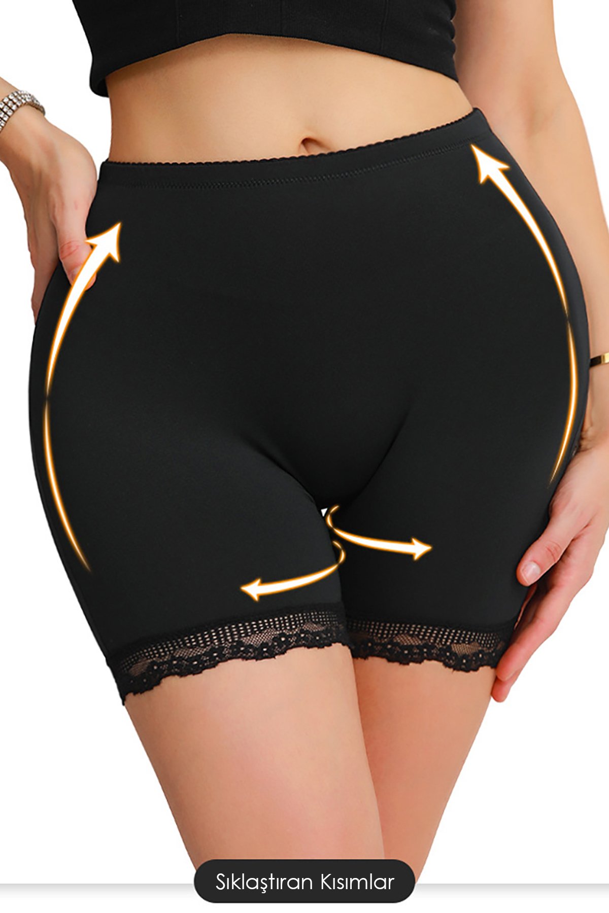 Kadın Siyah Pop Up Kalça Kaldırıcı ve Sekillendirici Dantel Paçalı Şort Külot