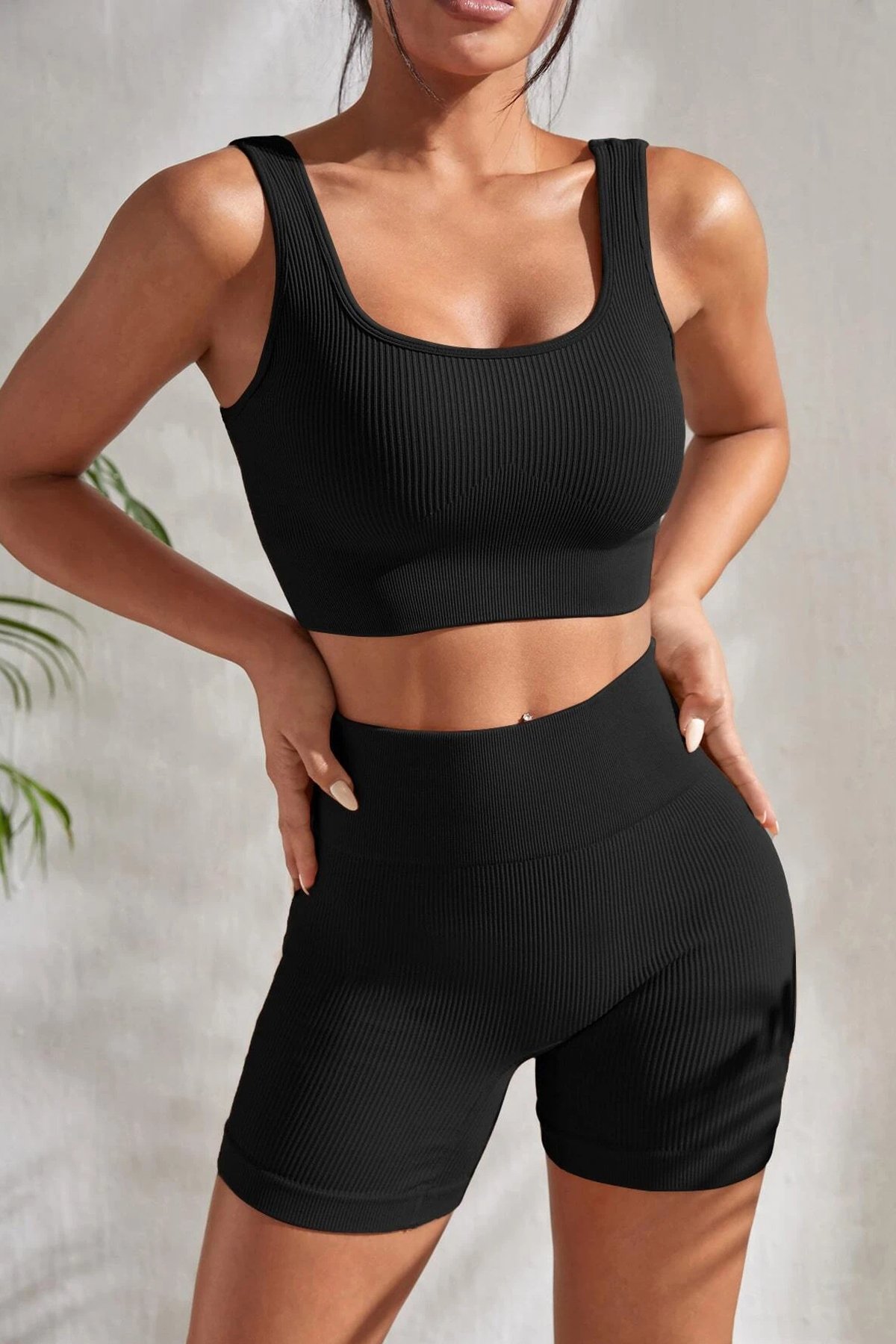 Kadın Siyah Şortlu Yüksek Bel Gecelik Takımı
