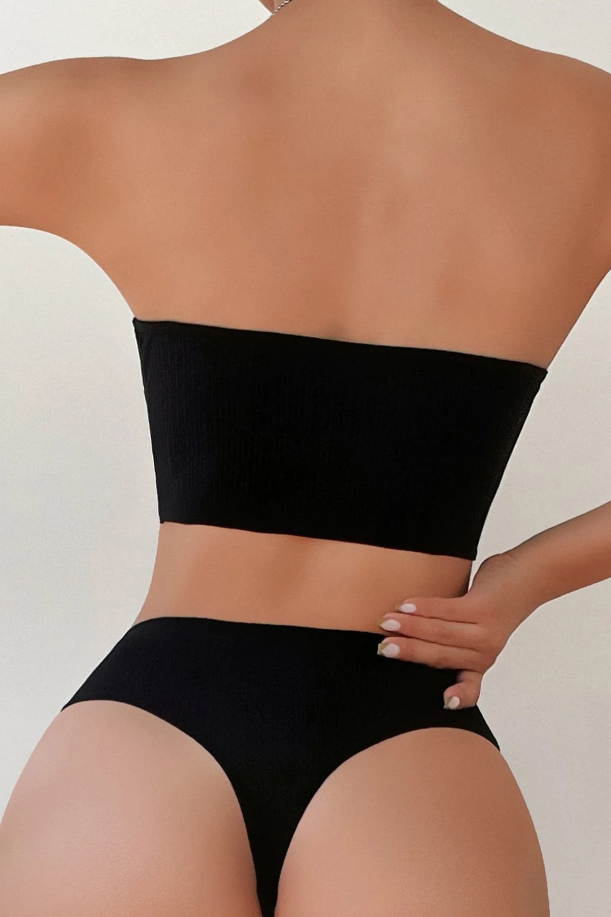 Kadın Siyah Straplez Sütyen ve Yüksek Bel Külot Takım