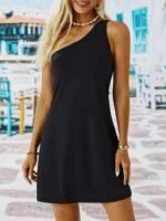 Kadın Tek Omuz Askılı Krep Mini Elbise