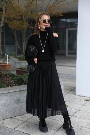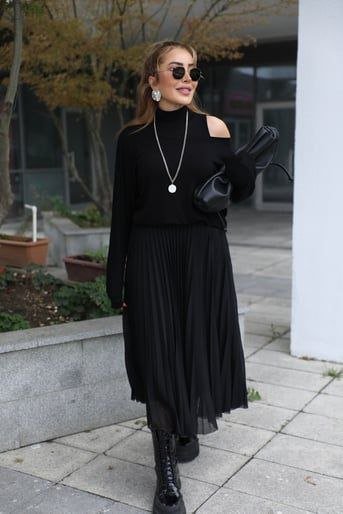 Kadın Triko Plise Ve Tül Detay Iki Parça Elbise