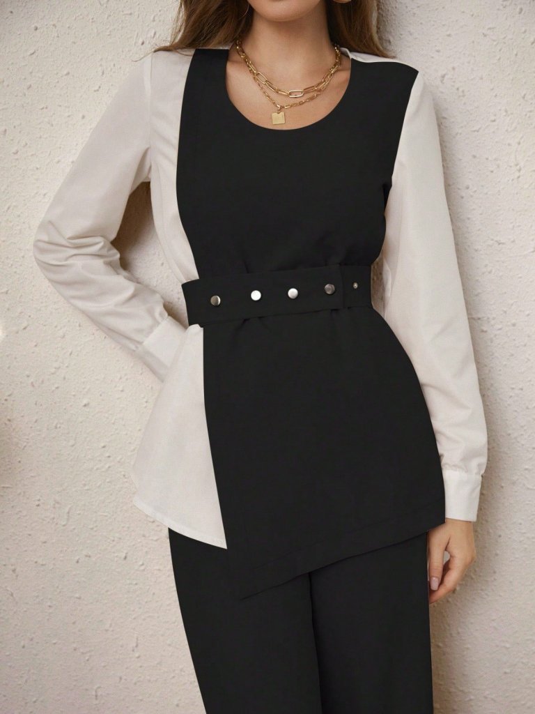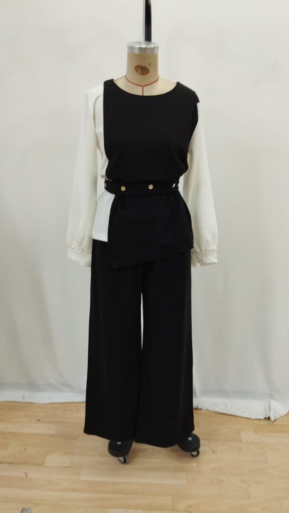 Kadın Uzun Kollu Açık Yakalı çift Renkli Kemerli Ithal Krep Ikili Takım