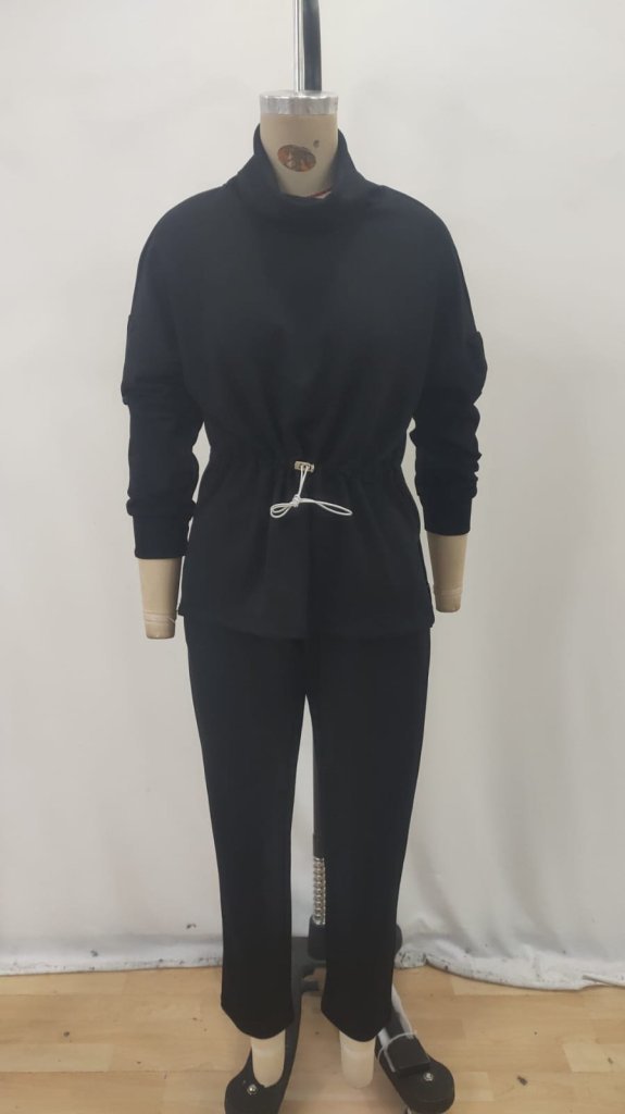 Kadın Uzun Kollu Balıkçı Yaka Belden Lastikli Modal Bluz Ve Pantolon Ikili Takım