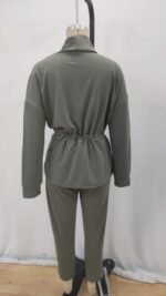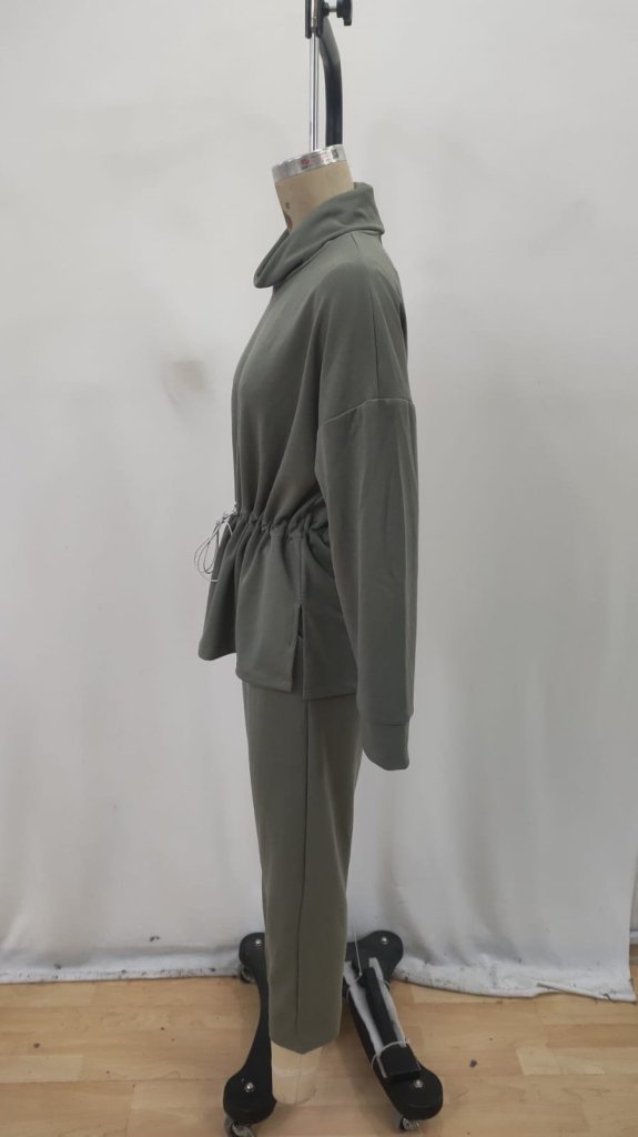 Kadın Uzun Kollu Bisiklet Yaka Yandan Yırtmaçlı şardonlu Kaşkorse Bluz Ve Pantolon Ikili Takım