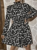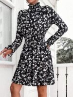Kadın Uzun Kollu Balıkçı Yaka çiçek Baskılı Helen Kumaş Elbise