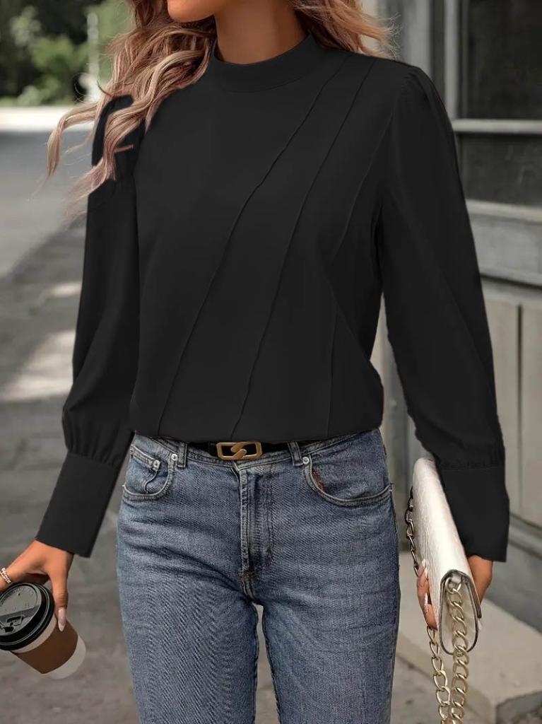 Kadın Uzun Kollu Balıkçı Yaka önden Dikişli Dokuma Bluz
