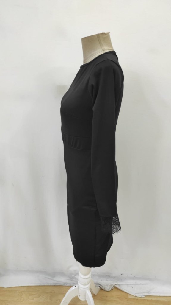 Kadın Uzun Kollu Bisiklet Yaka önden Dantel Ve Yırtmaç Detaylı Dalgıç Elbise