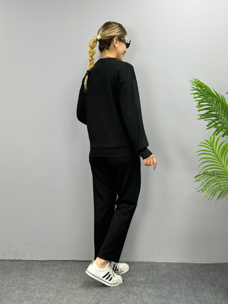 Kadın Uzun Kollu Bisiklet Yaka Viskon Iki Iplik Bluz Ve Pantolon Ikili Takım