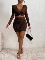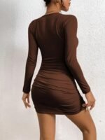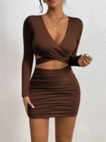 Kadın Uzun Kollu çapraz Dekolte Detaylı Mini Sandy Elbise