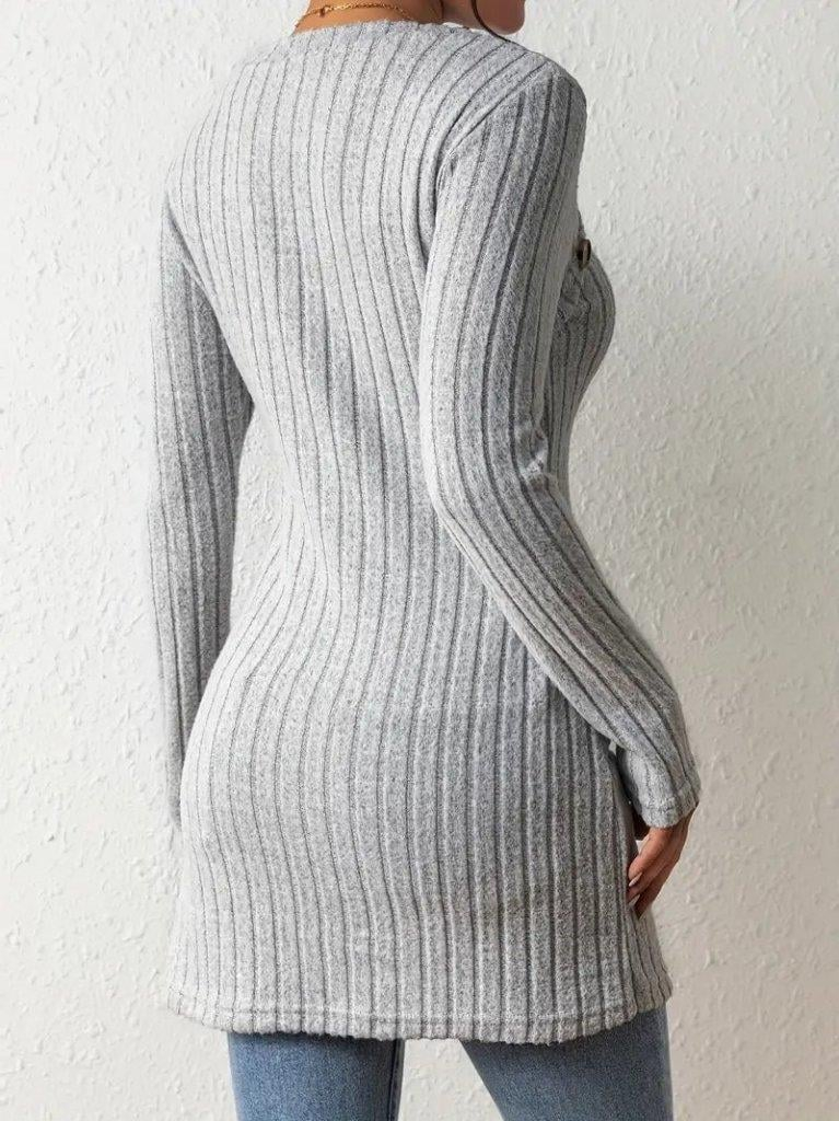 Kadın Uzun Kollu Derin Kare Yaka Düğme Detay şardonlu Kaşkorse Kruvaze Bluz