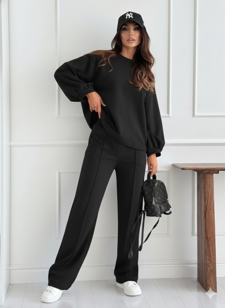 Kadın Uzun Kollu Geniş Kesim Modal Bluz Ve Pantolon Ikili Takım