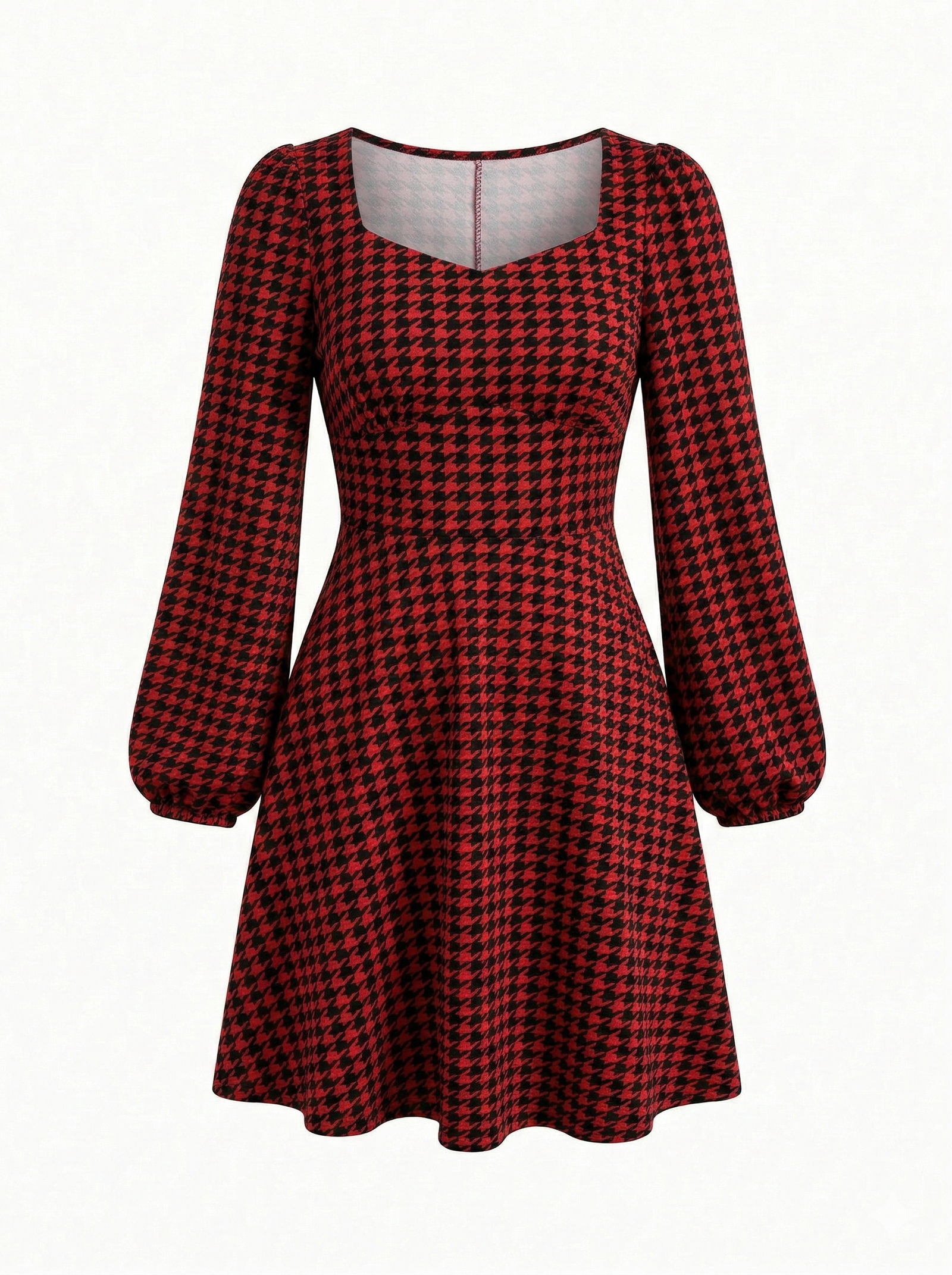 Kadın Uzun Kollu Kare Kalp Yakalı Mini Modal Elbise