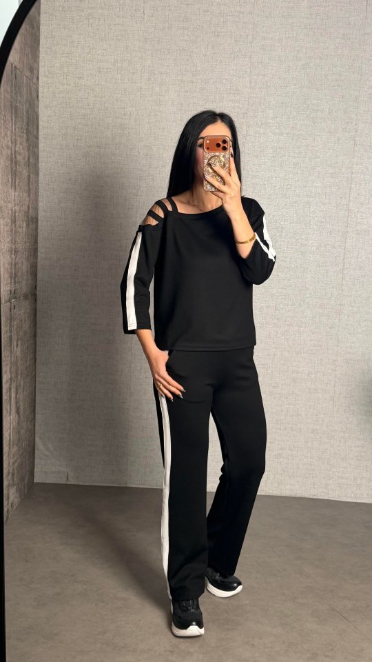 Kadın Uzun Kollu Kolu Tül Yanları şerit Detay Modal Ikili Takım