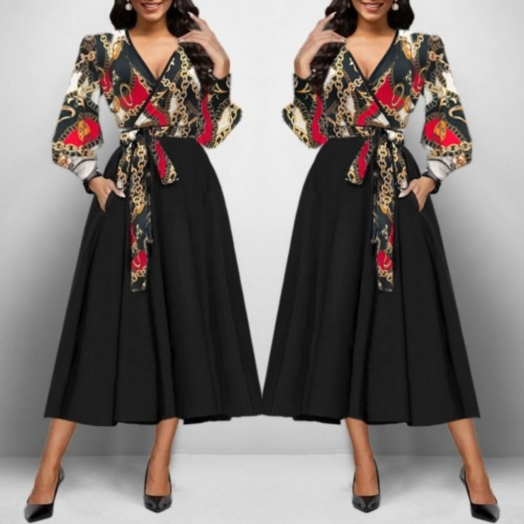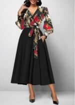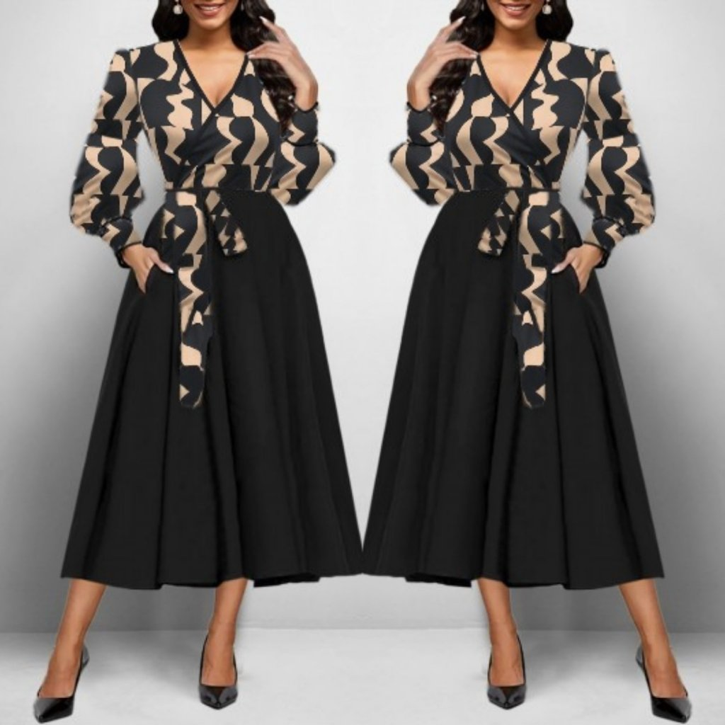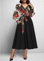 Kadın Uzun Kollu Kruvaze Yaka Dalgıç Krep Midi Boy Elbise