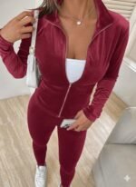 Kadın Uzun Kollu önden Fermuarlı Kadife Bluz Ve Pantolon Ikili Takım