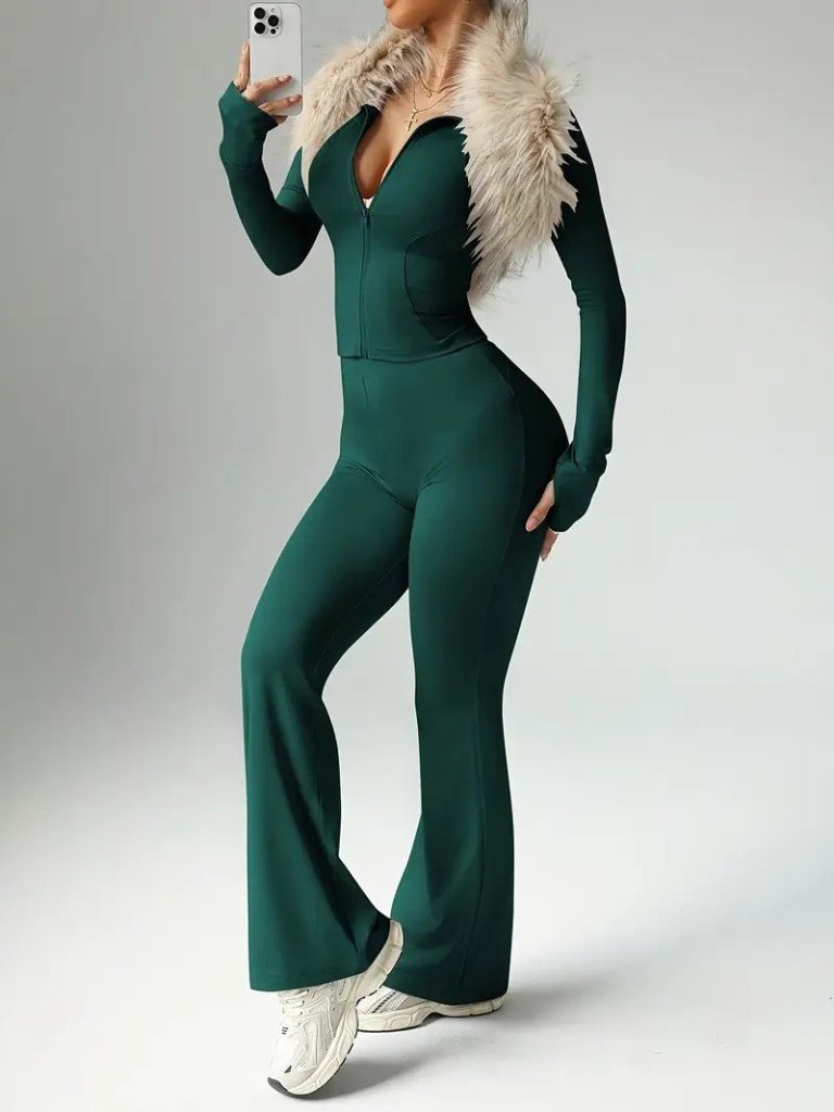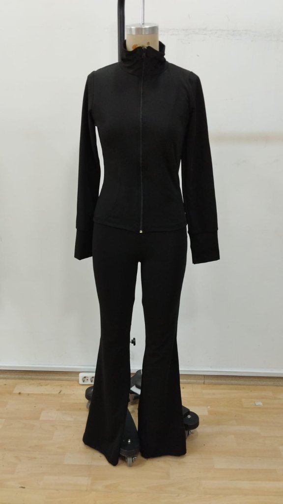 Kadın Uzun Kollu önden Fermuarlı Kısa Dalgıç Bluz Ve Pantolon Ikili Takım