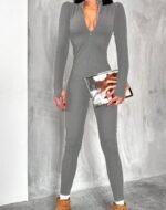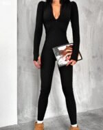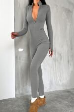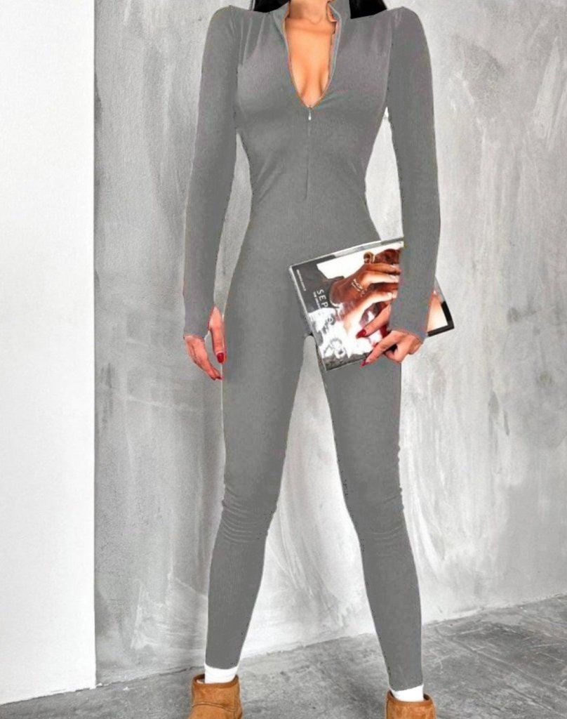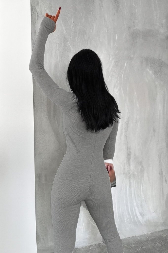 Kadın Uzun Kollu V Yaka Baş Parmak Geçirmeli Detay Kaşkorse Tulum