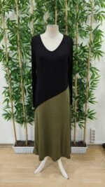 Kadın Uzun Kollu V Yakalı Blok Desenli Viskon Elbise