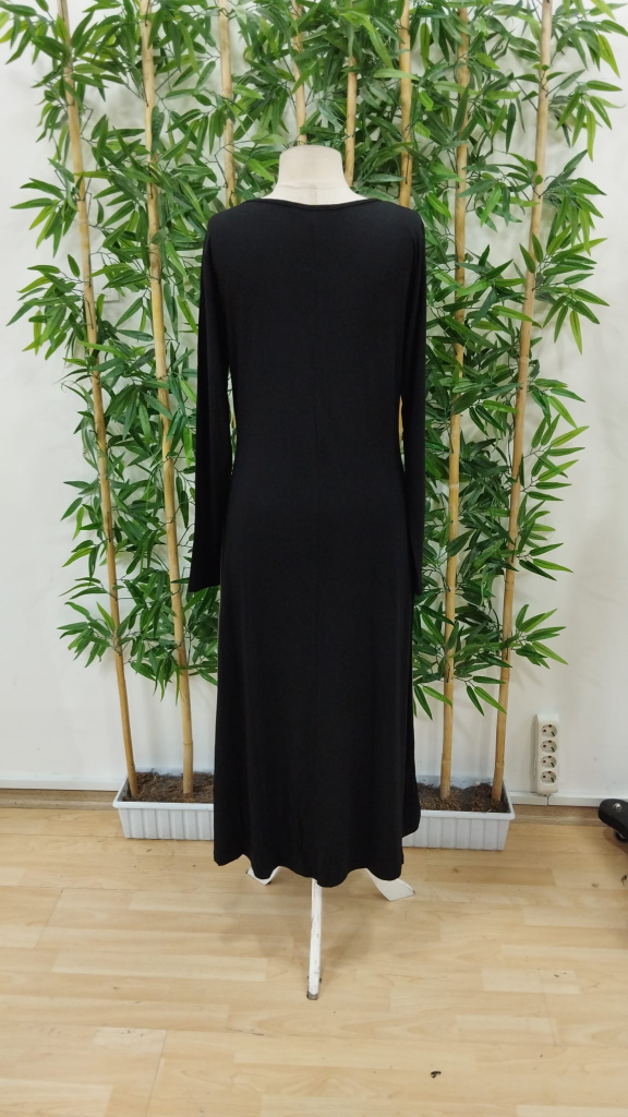Kadın Askılı Geometrik Yakalı Geniş Kesim Detaylı Ithal Krep Elbise