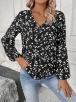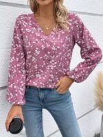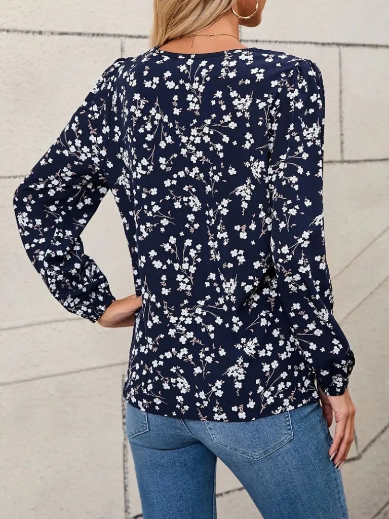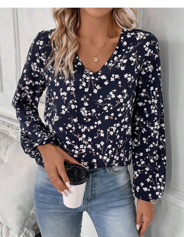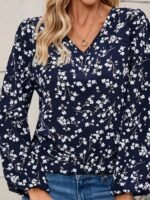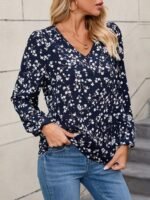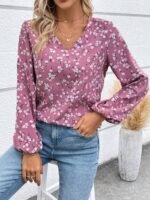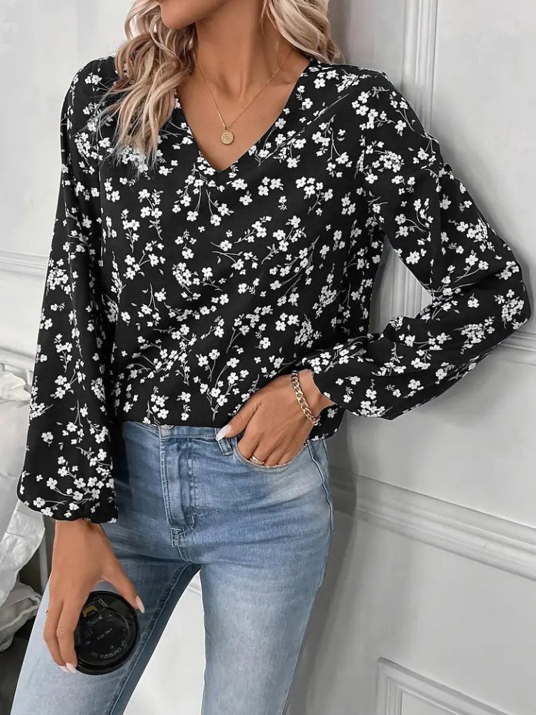 Kadın Uzun Kollu V Yakalı çiçek Desenli Modal Bluz