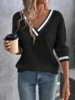 Kadın Uzun Kollu V Yakalı Waffle Bluz