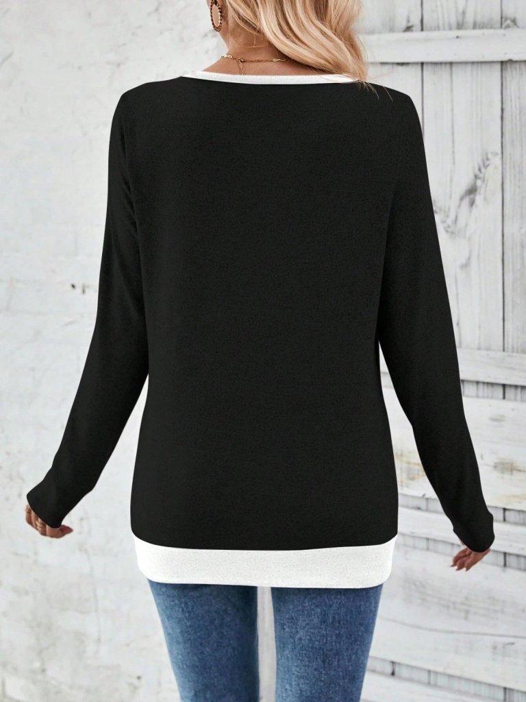 Kadın Uzun Kollu Bisiklet Yaka Desenli Viskon Iki Iplik Bluz
