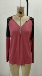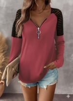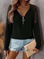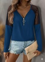 Kadın Uzun Kollu Yakadan Fermuarlı Viskon Bluz