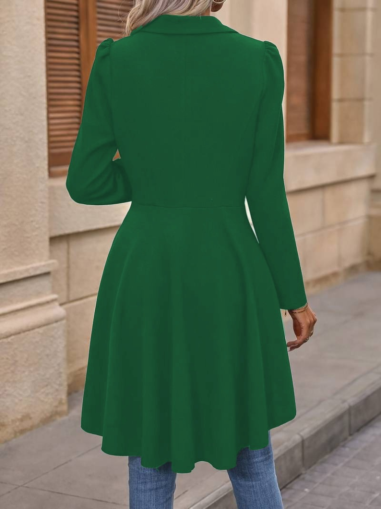 Kadın Uzun Kollu Yakalı önden Düğmeli Uzun Atlas Blazer Ceket