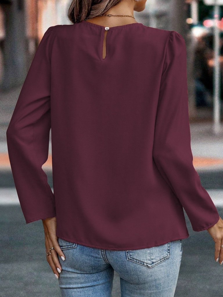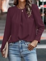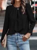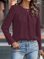 Kadın Uzun Kollu Yuvarlak önden Pileli Ithal Krep Bluz