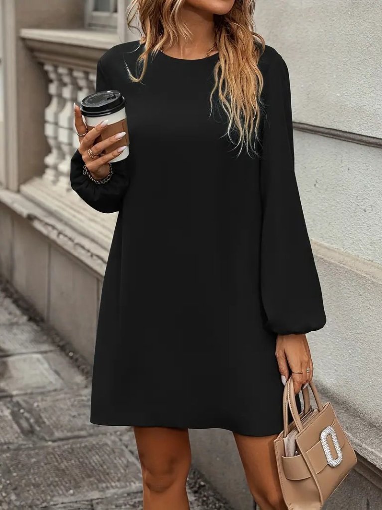 Kadın Uzun Kollu Yuvarlak Yaka Mini Ithal Krep Elbise