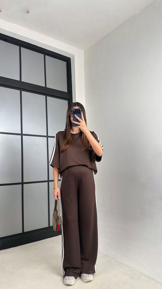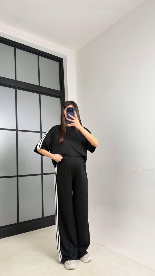 Kadın Yarasa Kol Yanları şerit Detay Modal Kumaş Ikili Takım