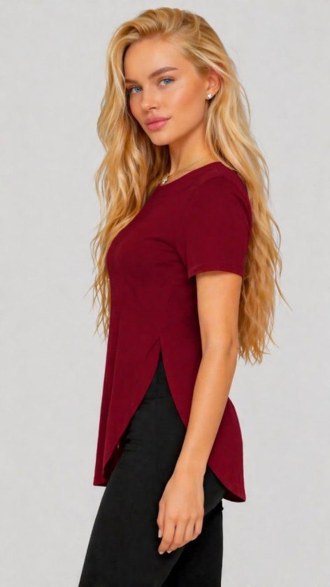 Kadın Yırtmaç Detaylı Viskon Kumaş Bluz