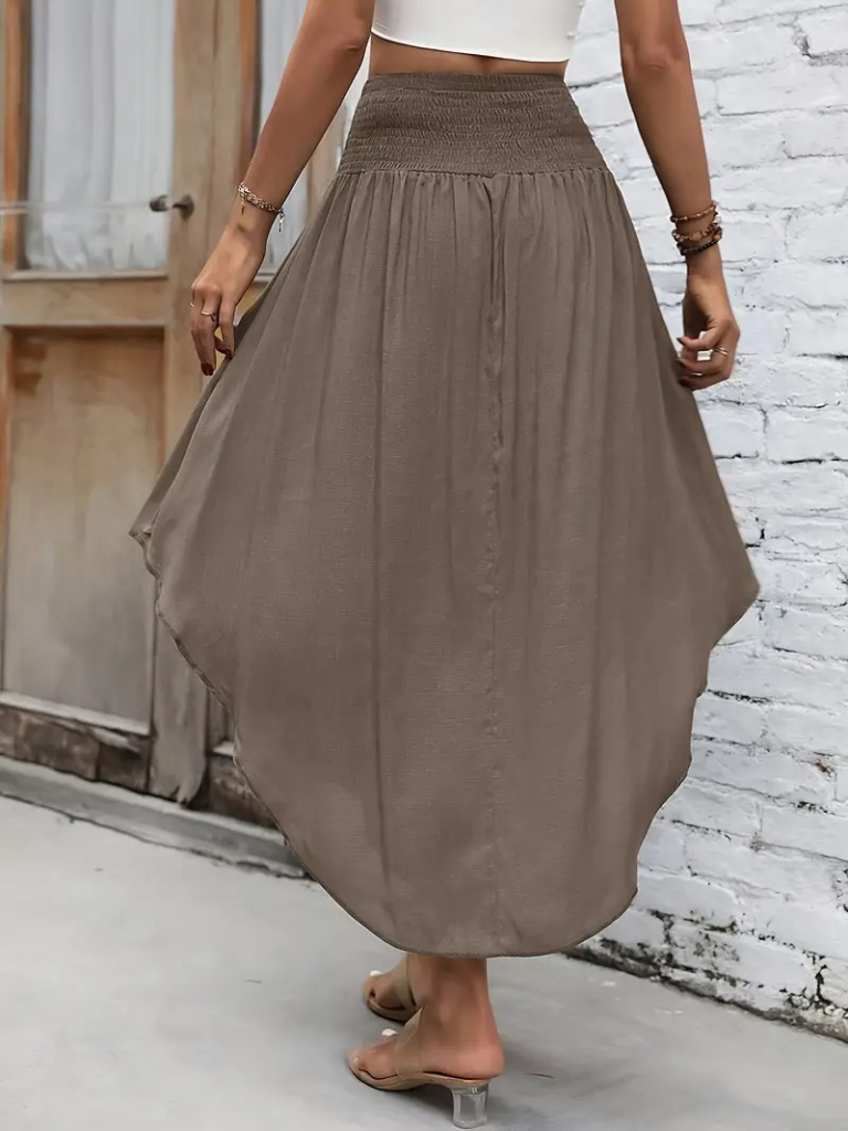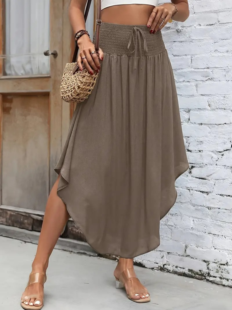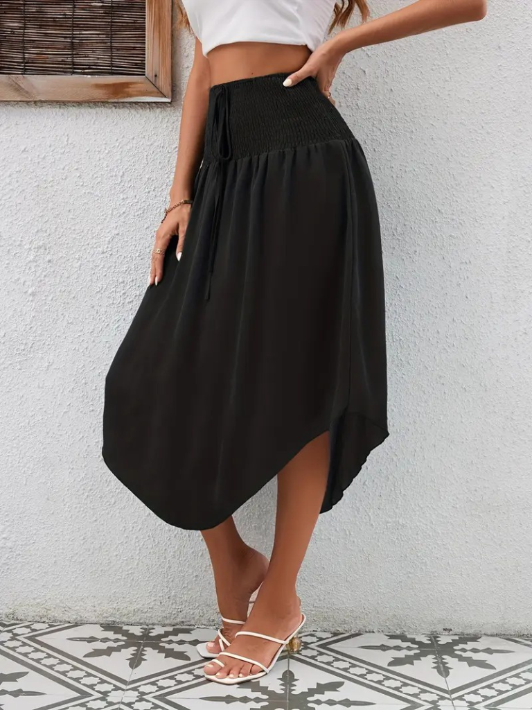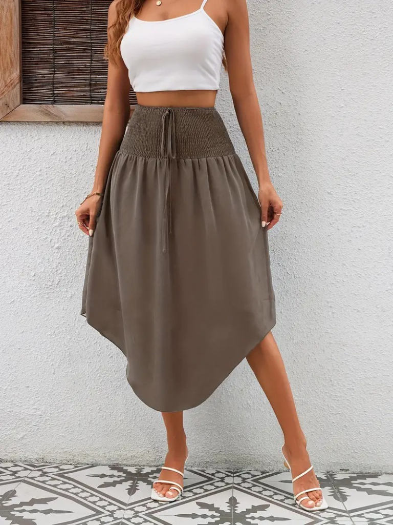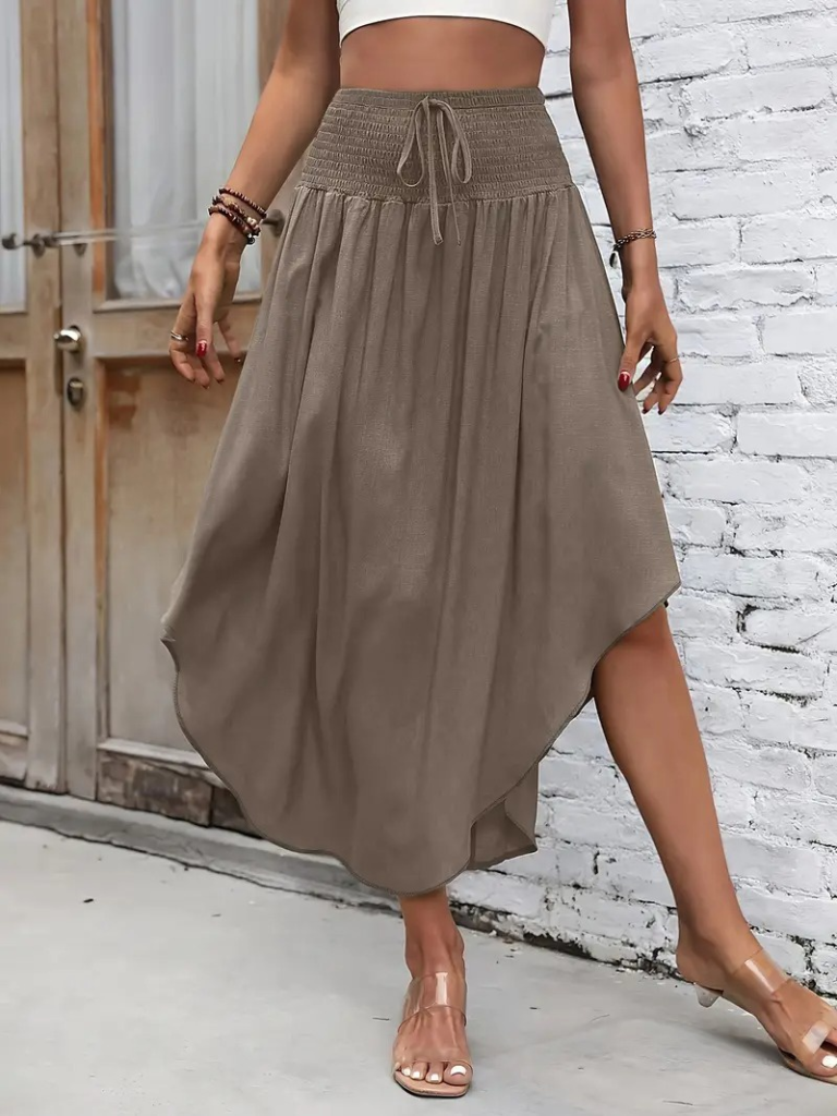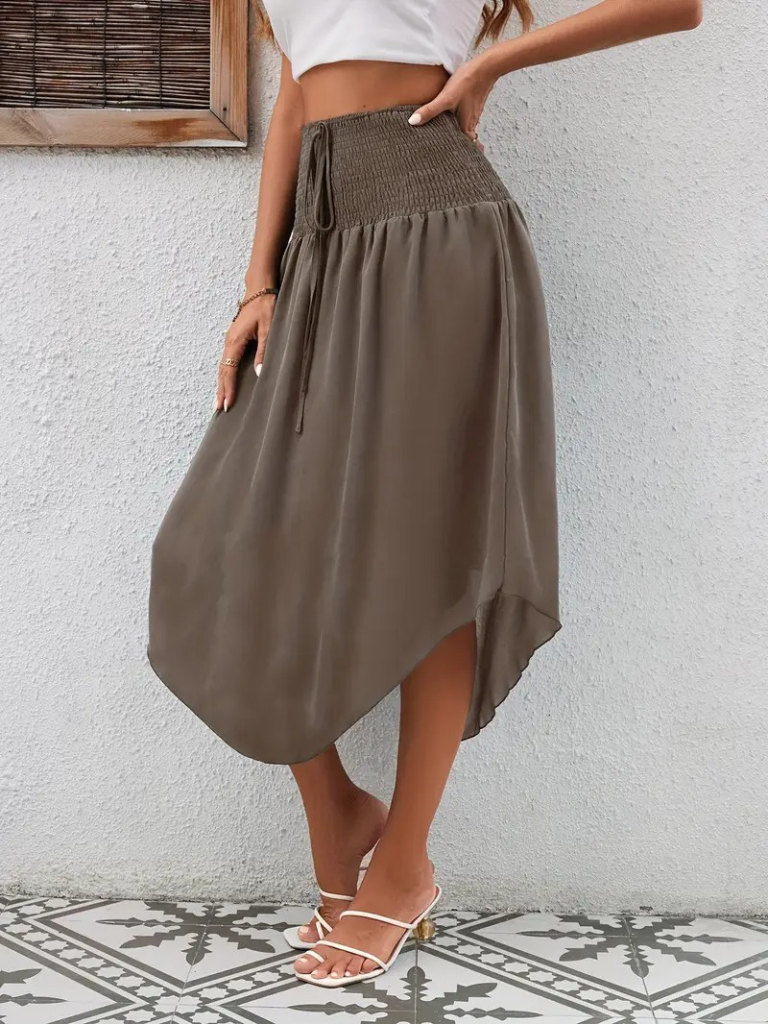 Kadın Yüksek Bel Belden Bağlamalı Asimetrik Kesim Detaylı Sandy Etek