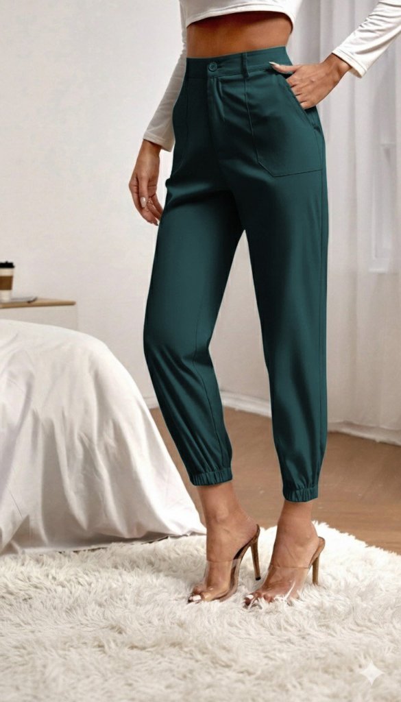 Kadın Yüksek Bel Cepli Paçası Lastikli Ithal Krep Pantolon