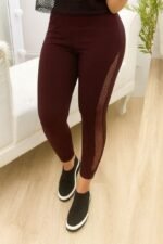 Kadın Yüksek Bel File Detaylı Dar Kesim Viskon Iki Iplik Pantolon