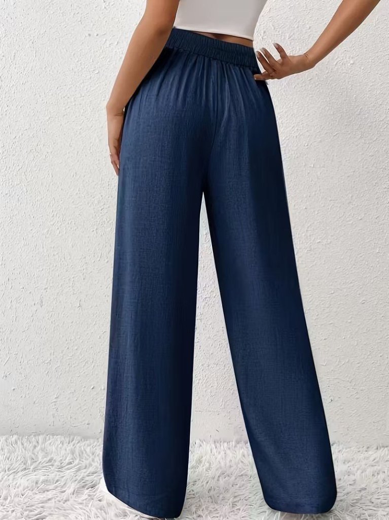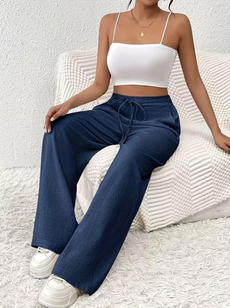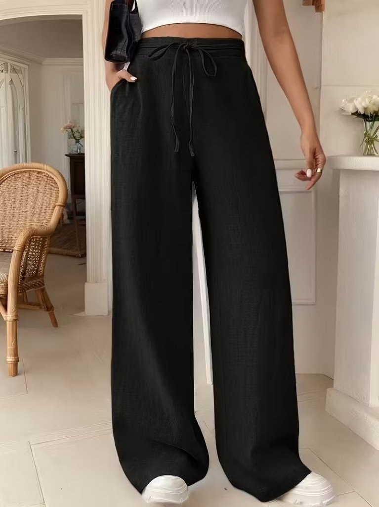 Kadın Yüksek Bel önden Bağlamalı Geniş Kesim Keten Pantolon