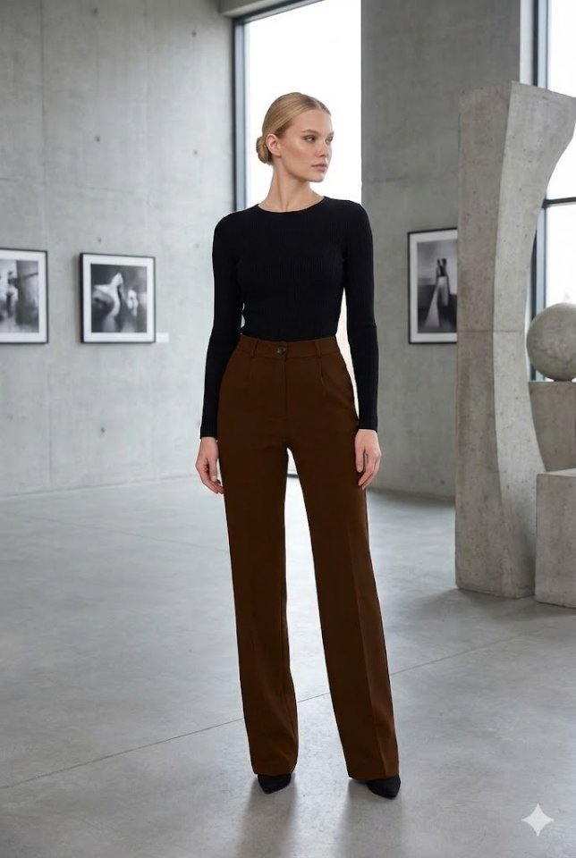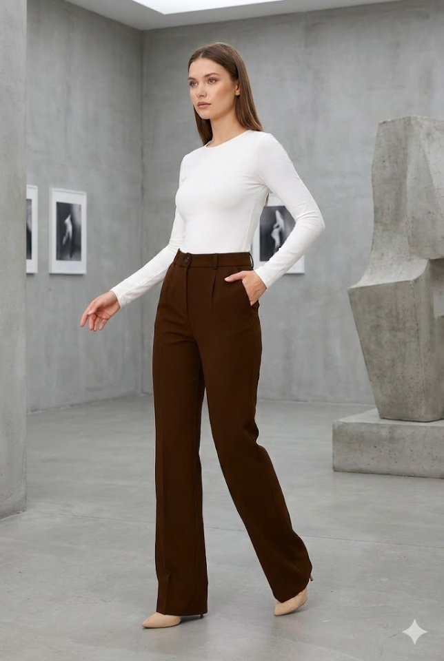 Kadın Yüksel Bel Full Likralı Palazzo Pantolon