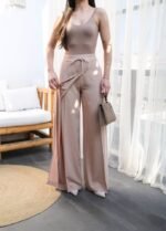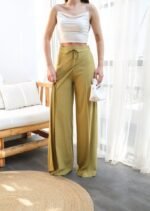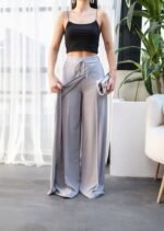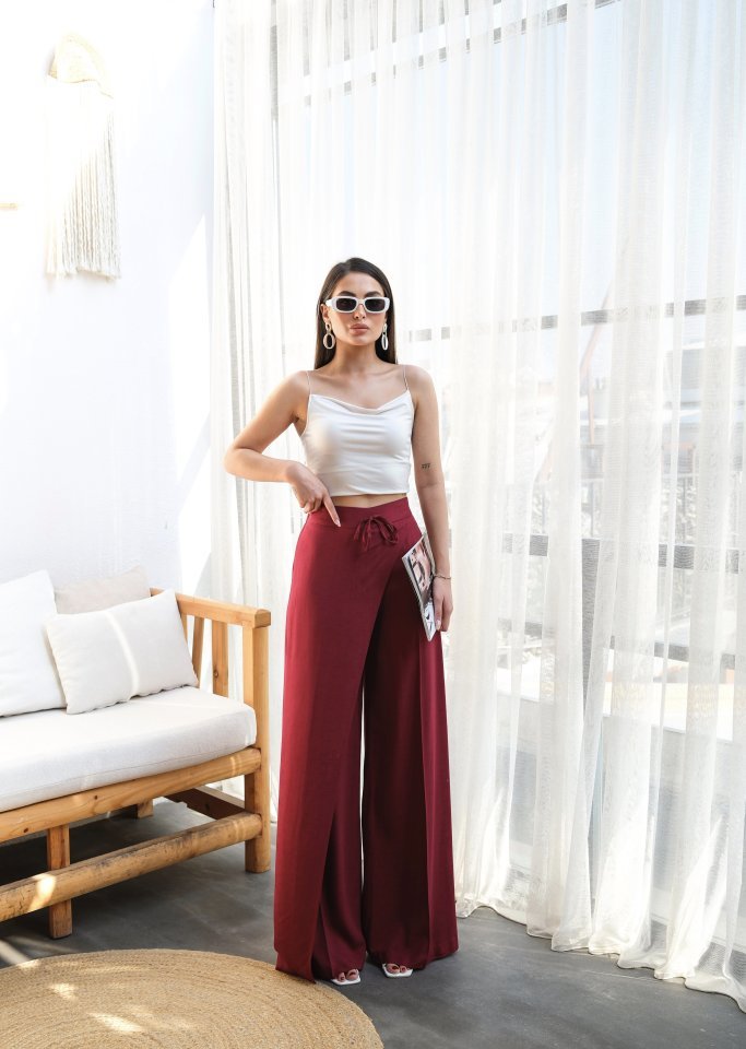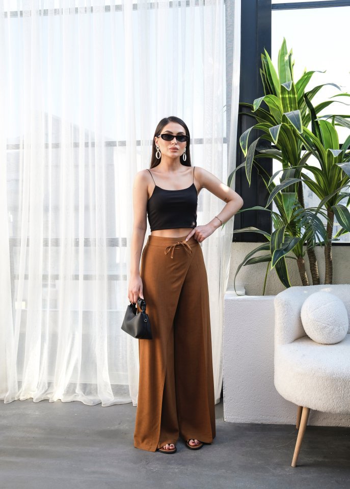 Keten Önü Çapraz Parçali Lasti̇kli̇ Ve Bağcikli Geni̇ş Paça Pantolon