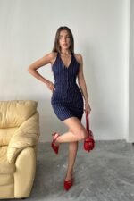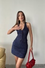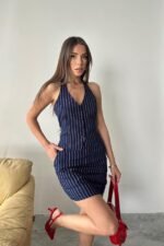 Lacivert Çizgili Yelek Ve Etek Takım