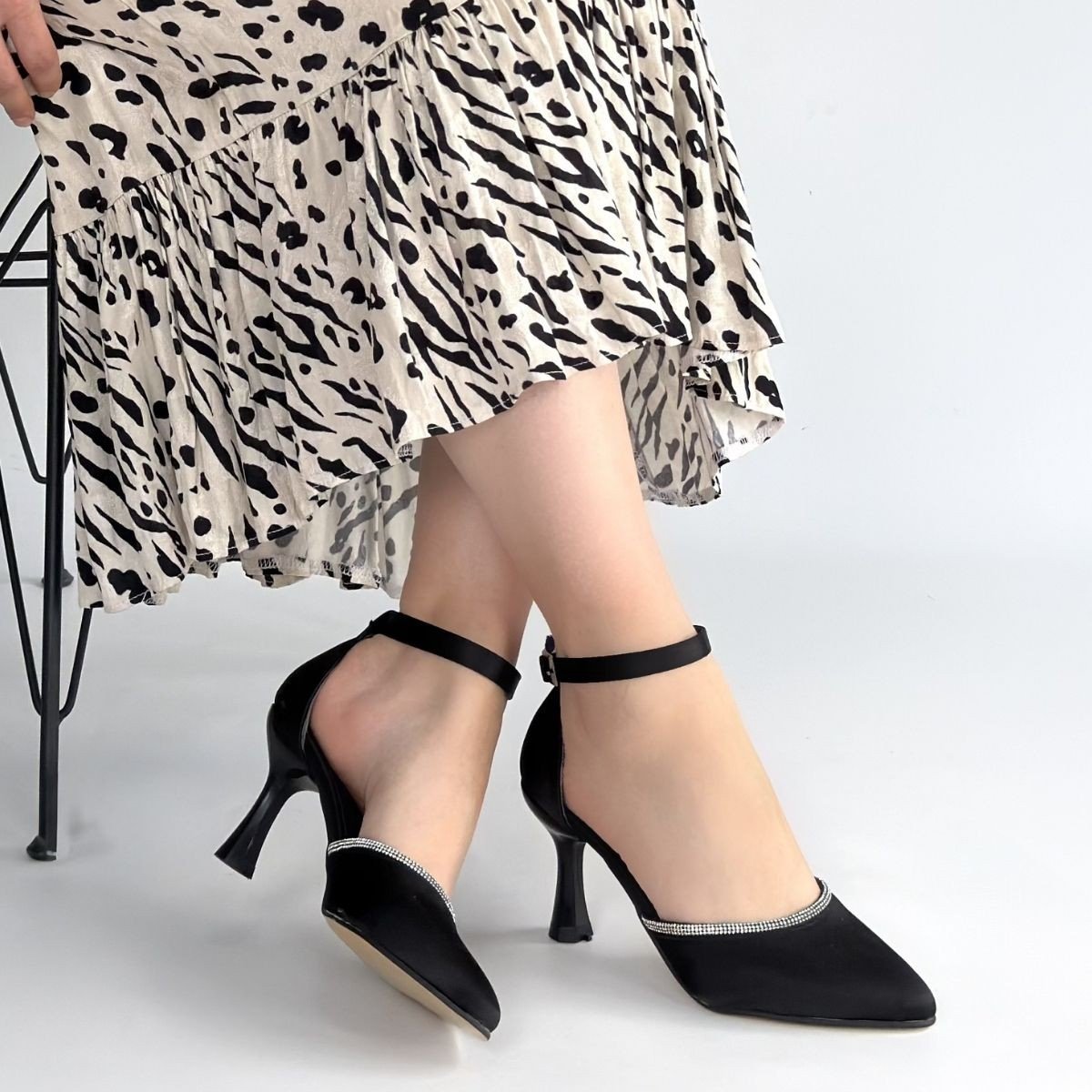 Mejja Siyah Saten Topuklu Ayakkabı