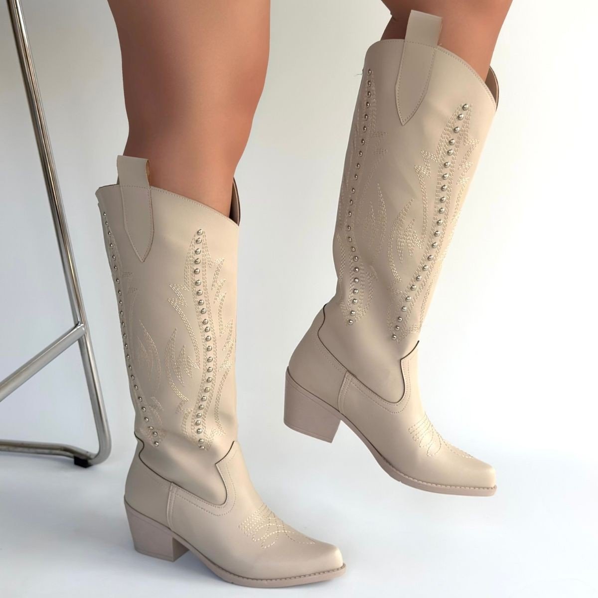 Meof Bej Cilt Topuklu Çizme