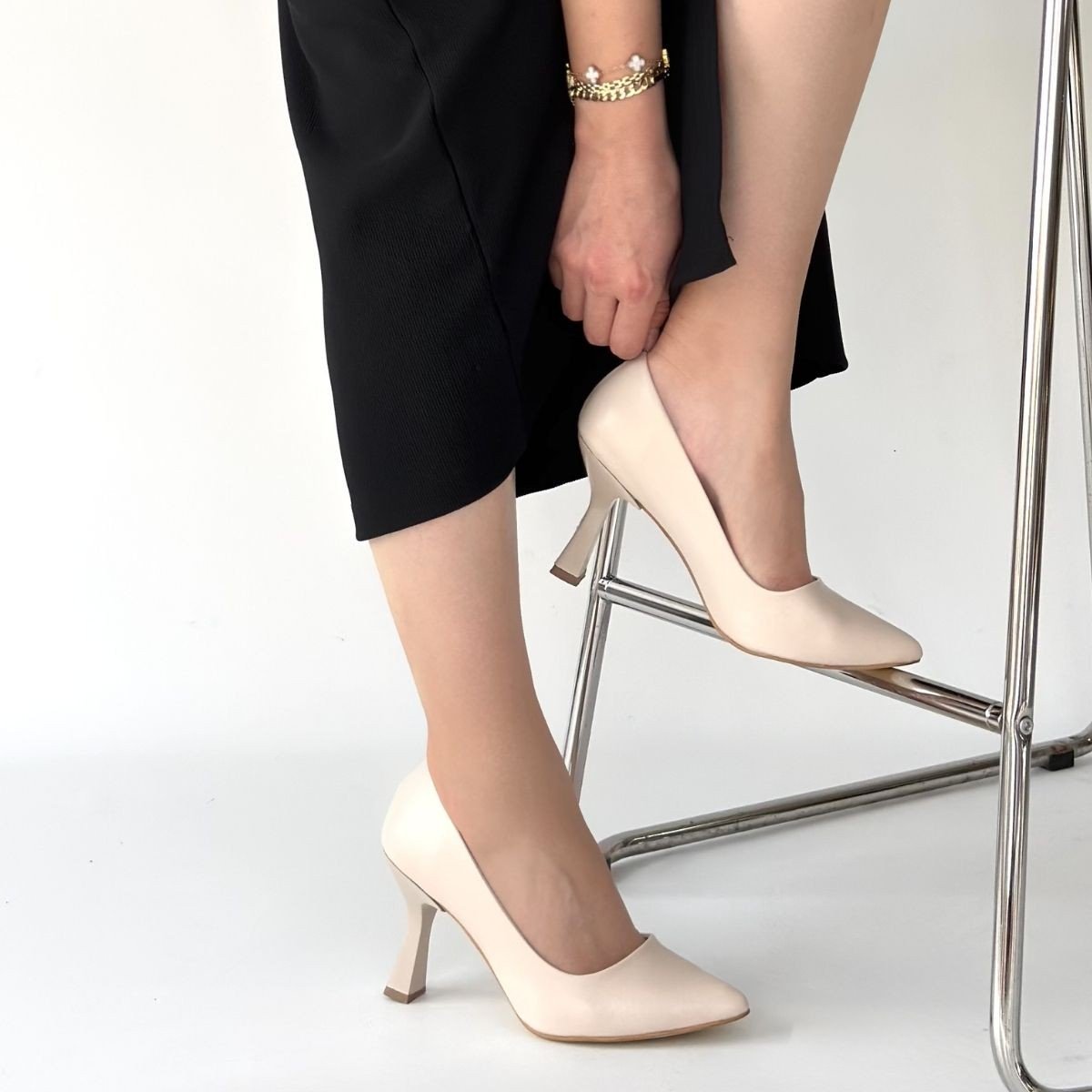 Meyli Bej Cilt Topuklu Ayakkabı