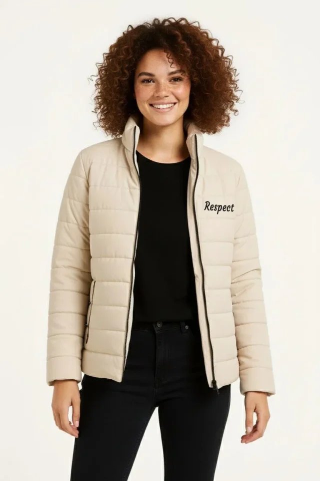 Mikro Su İtici Kapitone Baskılı Astarlı Fermuarlı Bomber Mont – Bej