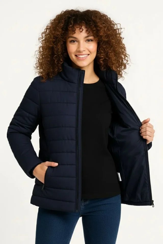 Mikro Su İtici Kapitone Baskılı Astarlı Fermuarlı Bomber Mont – Lacivert