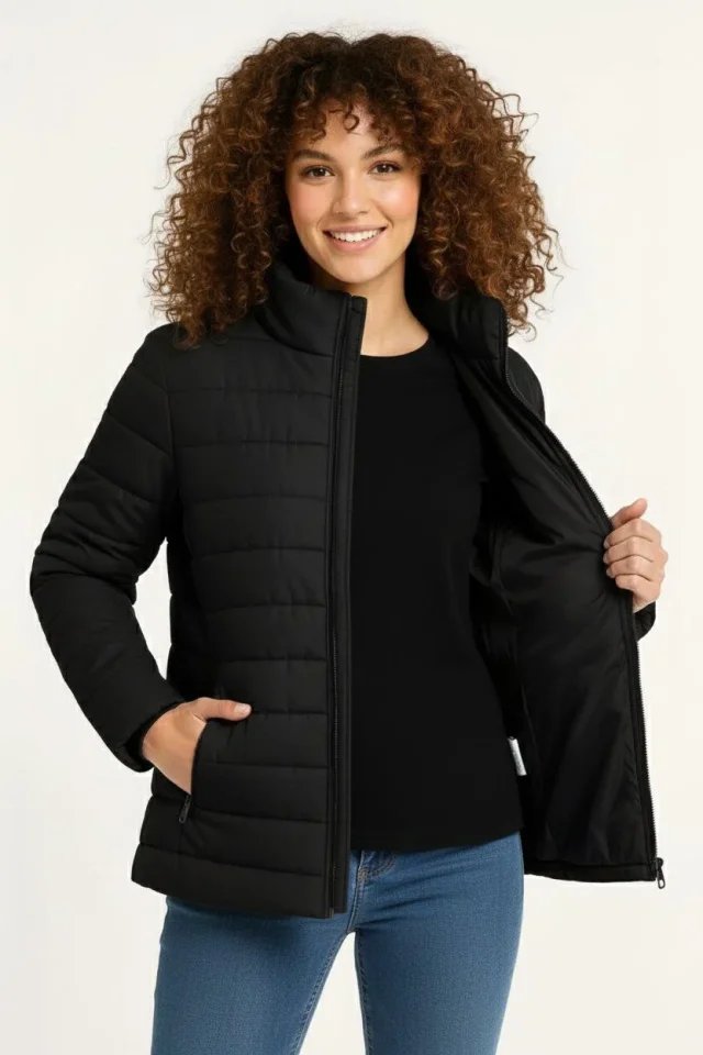 Mikro Su İtici Kapitone Baskılı Astarlı Fermuarlı Bomber Mont – Siyah