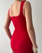 Kadın Dalgıç Krep V Yaka Ve Sırt Dekolte Detaylı Elbise
